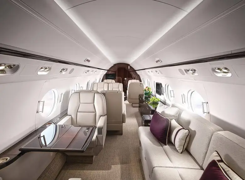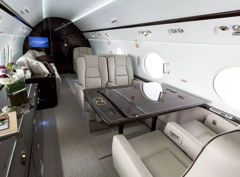 - Просторный и Эргономичный Салон: Салон G550 предлагает до четырех отдельных жилых зон, которые можно настроить в соответствии с вашими потребностями. Большие овальные окна Gulfstream обеспечивают превосходное естественное освещение и панорамные виды, создавая ощущение простора и комфорта.