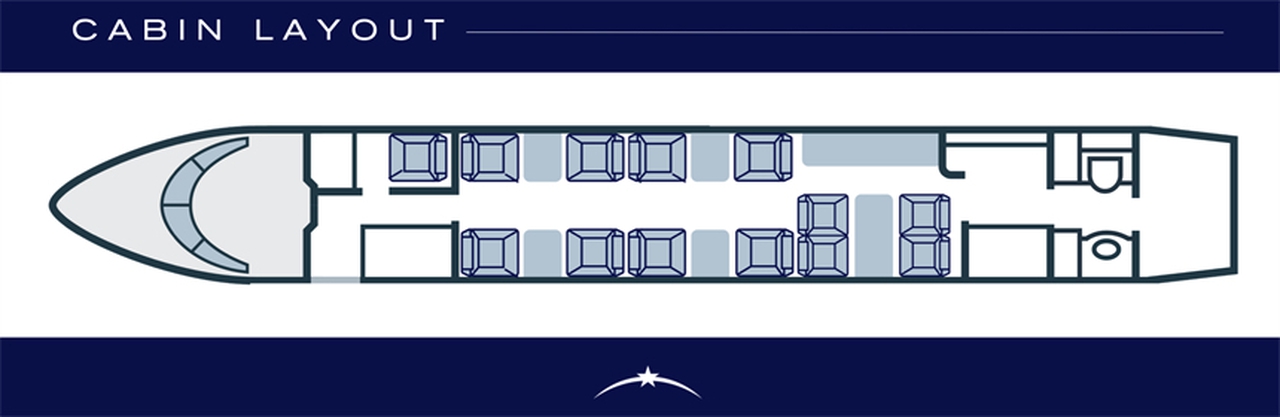 Gulfstream G550 LV-KLB рассчитан на 12 пассажиров. Багажное отделение объёмом 6.4 м³ позволяет разместить до 19 чемоданов L-размера . Максимальная дальность полёта — 12501 км.
