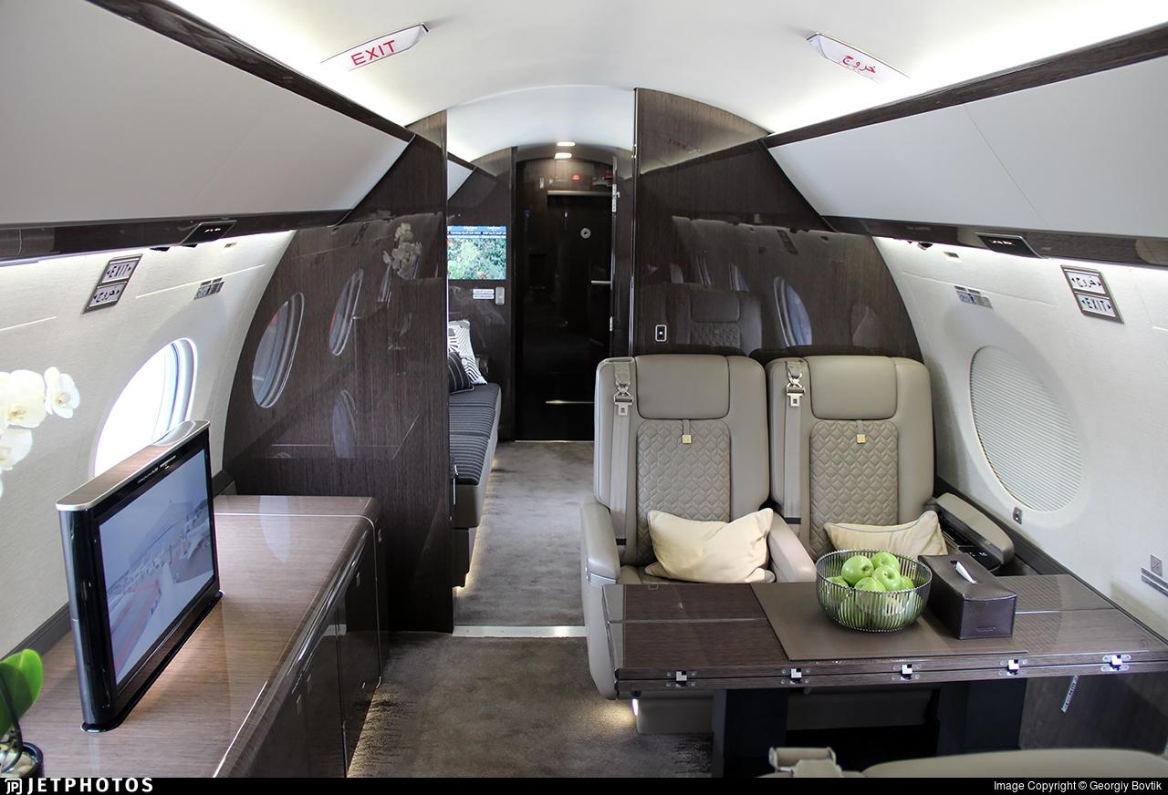 Gulfstream G650ER A7-CGE рассчитан на 13 пассажиров. Багажное отделение объёмом 5.52 м³ позволяет разместить до 16 чемоданов L-размера . Максимальная дальность полёта — 13890 км.
