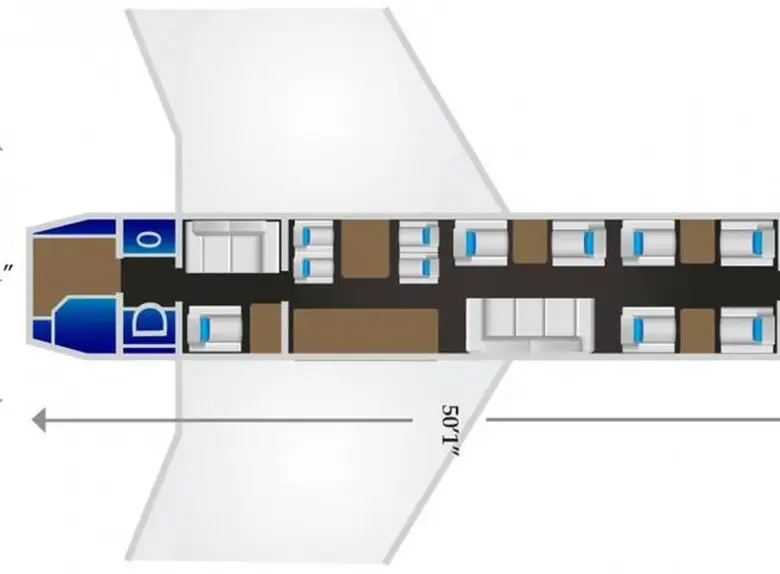 - Длина салона: 15,3 метра