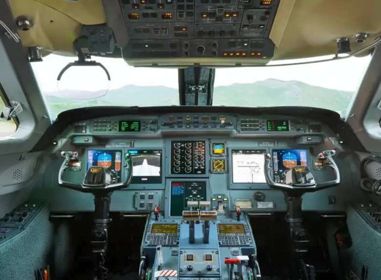 - Передовая авионика: Кабина пилотов оснащена передовой авионикой, повышающей безопасность и снижающей рабочую нагрузку пилотов. Более ранние модели имели авионику Honeywell SPZ-8600, а более поздние версии включали обновленные системы. Многие G-V с годами прошли модернизацию авионики.