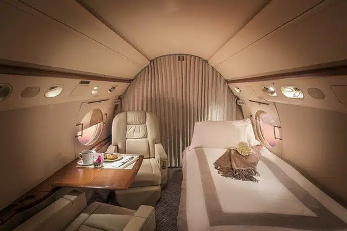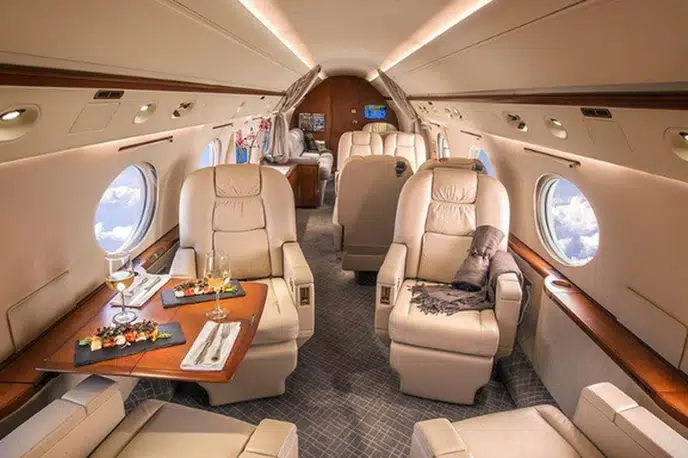 Gulfstream G-V N619GV . Багажное отделение объёмом 5.24 м³ позволяет разместить до 15 чемоданов L-размера . Максимальная дальность полёта — 12501 км.