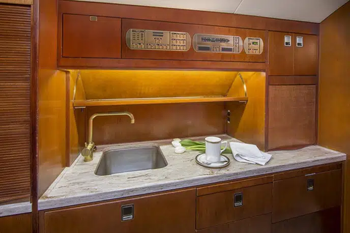 На борту доступны следующие удобства: Полный экипаж , Развлекательная система , Горячее питание , Туалет , Спутниковый телефон .