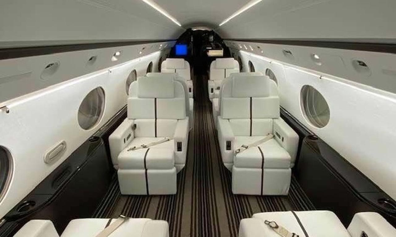 Gulfstream G-V N808JG рассчитан на 16 пассажиров. Багажное отделение объёмом 5.24 м³ позволяет разместить до 15 чемоданов L-размера . Максимальная дальность полёта — 12501 км.
