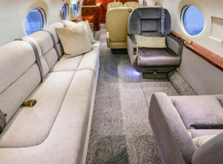 Gulfstream G-V N866AB рассчитан на 14 пассажиров. Багажное отделение объёмом 5.24 м³ позволяет разместить до 15 чемоданов L-размера . Максимальная дальность полёта — 12501 км.