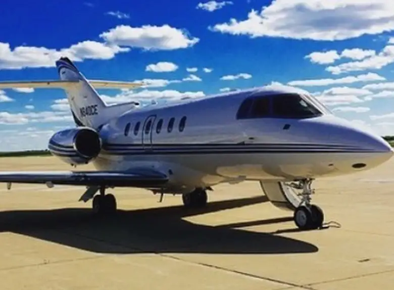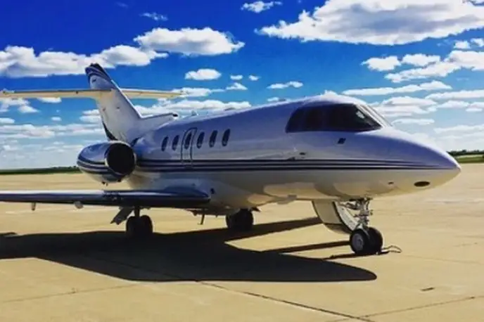 Hawker 800XP N850FB . Багажное отделение объёмом 1.4 м³ позволяет разместить до 4 чемоданов L-размера . Максимальная дальность полёта — 4704 км.