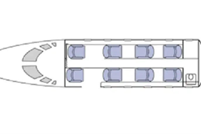 Hawker 400A TC-ADB accommodates up to 8 passengers. The baggage compartment volume of 1.59 m³ can hold up to 4 large suitcases . The maximum flight range reaches 2744 km, depending on payload and weather conditions.