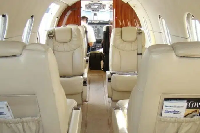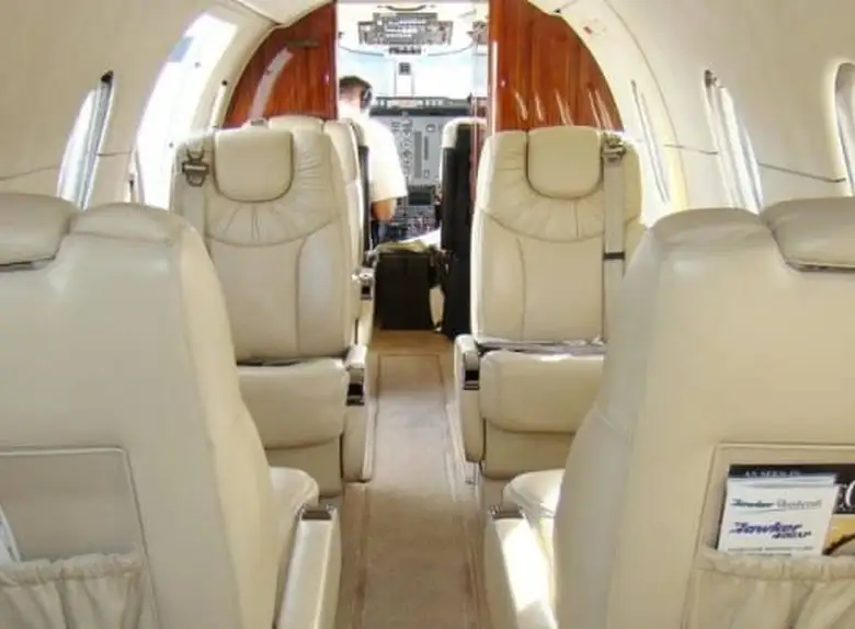 - Просторный и Комфортабельный Салон: Несмотря на принадлежность к классу легких джетов, Hawker 400XP предлагает удивительно просторный салон с плоским полом, обеспечивающий комфортное размещение до 7-9 пассажиров. Высота потолка 1.45 м и ширина 1.50 м создают ощущение большего пространства по сравнению с некоторыми конкурентами.