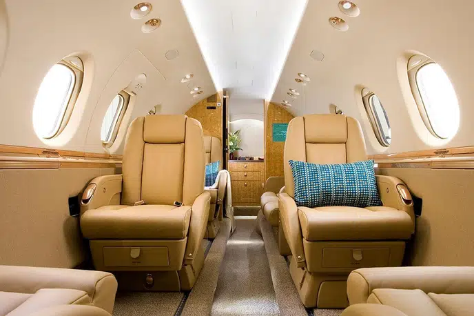 "Hawker 750, арендованный через JETVIP, идеально подошел для нашей региональной деловой поездки. Салон с возможностью стоять в полный рост существенно повысил комфорт во время полета, а обслуживание от JETVIP было на высшем уровне." - Марк Р., руководитель компании.