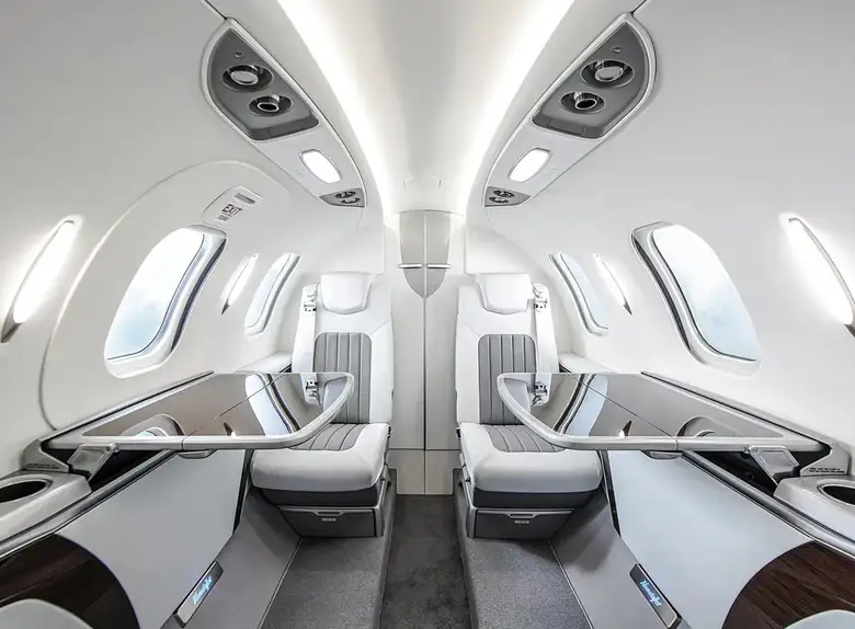 Салон рассчитан на до 6 пассажиров, отделан качественными материалами, имеет эргономичные кресла и системы освещения, создающие атмосферу уюта и стиля.