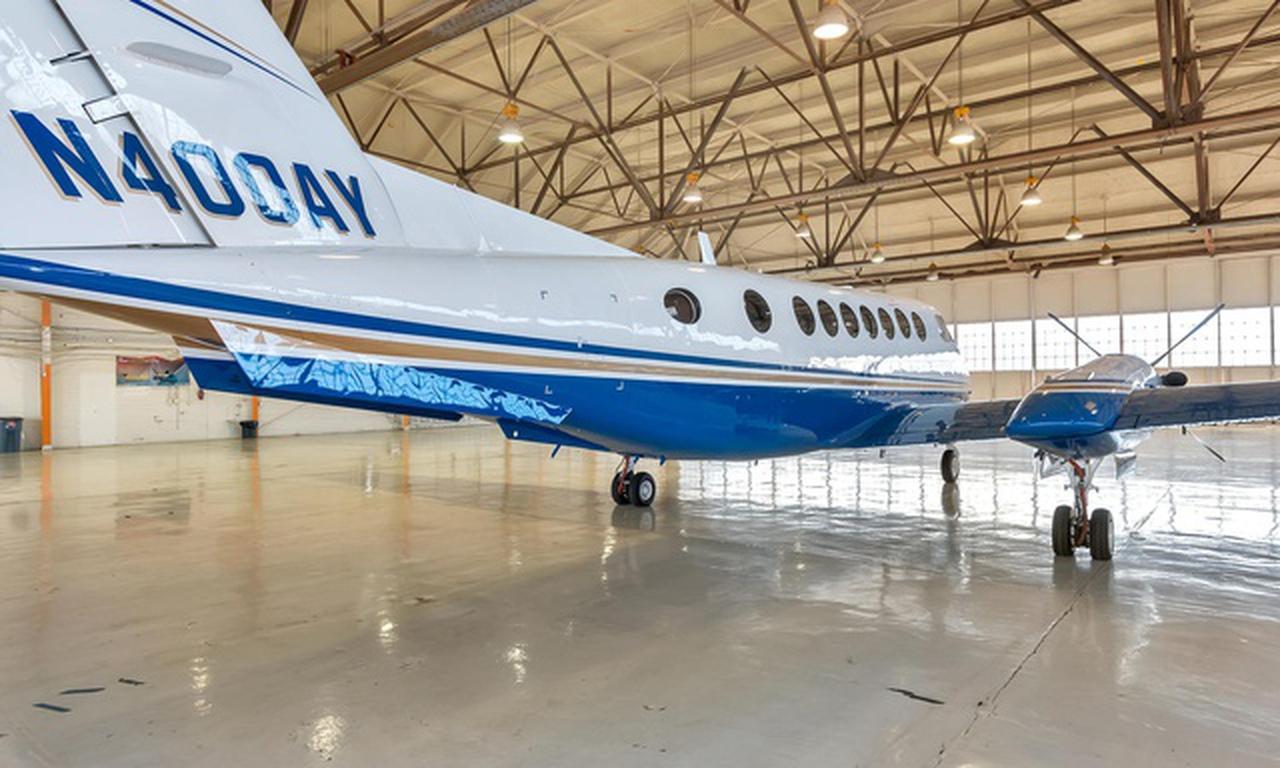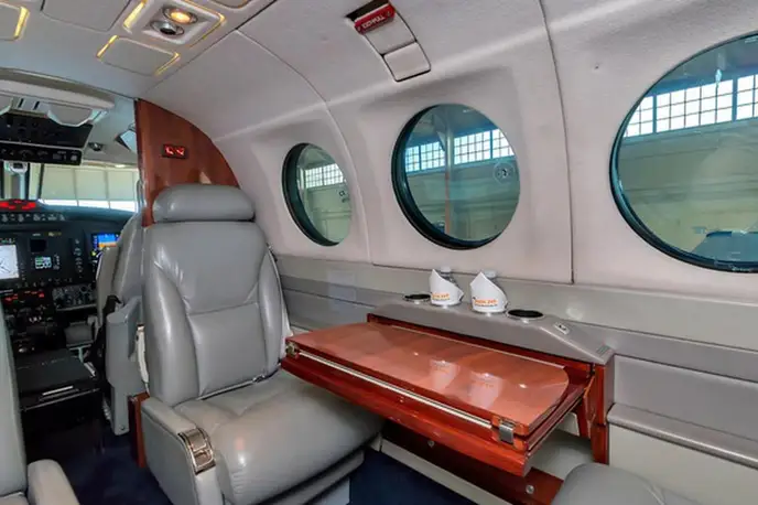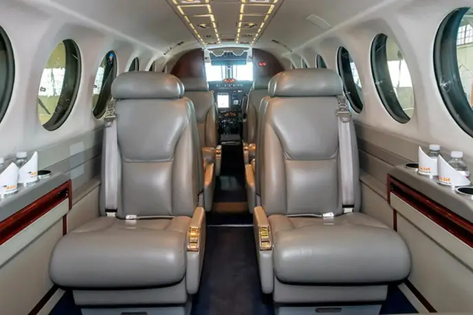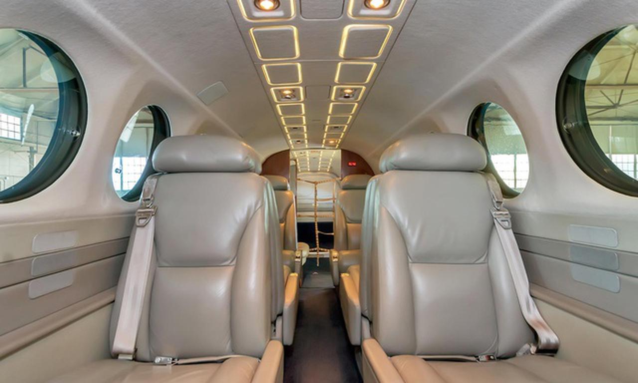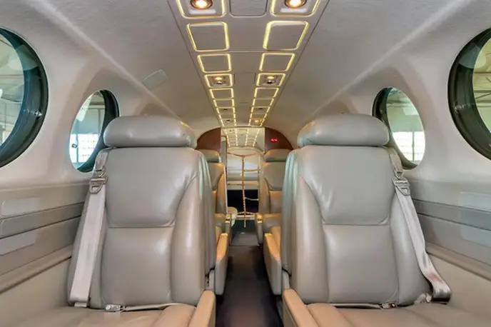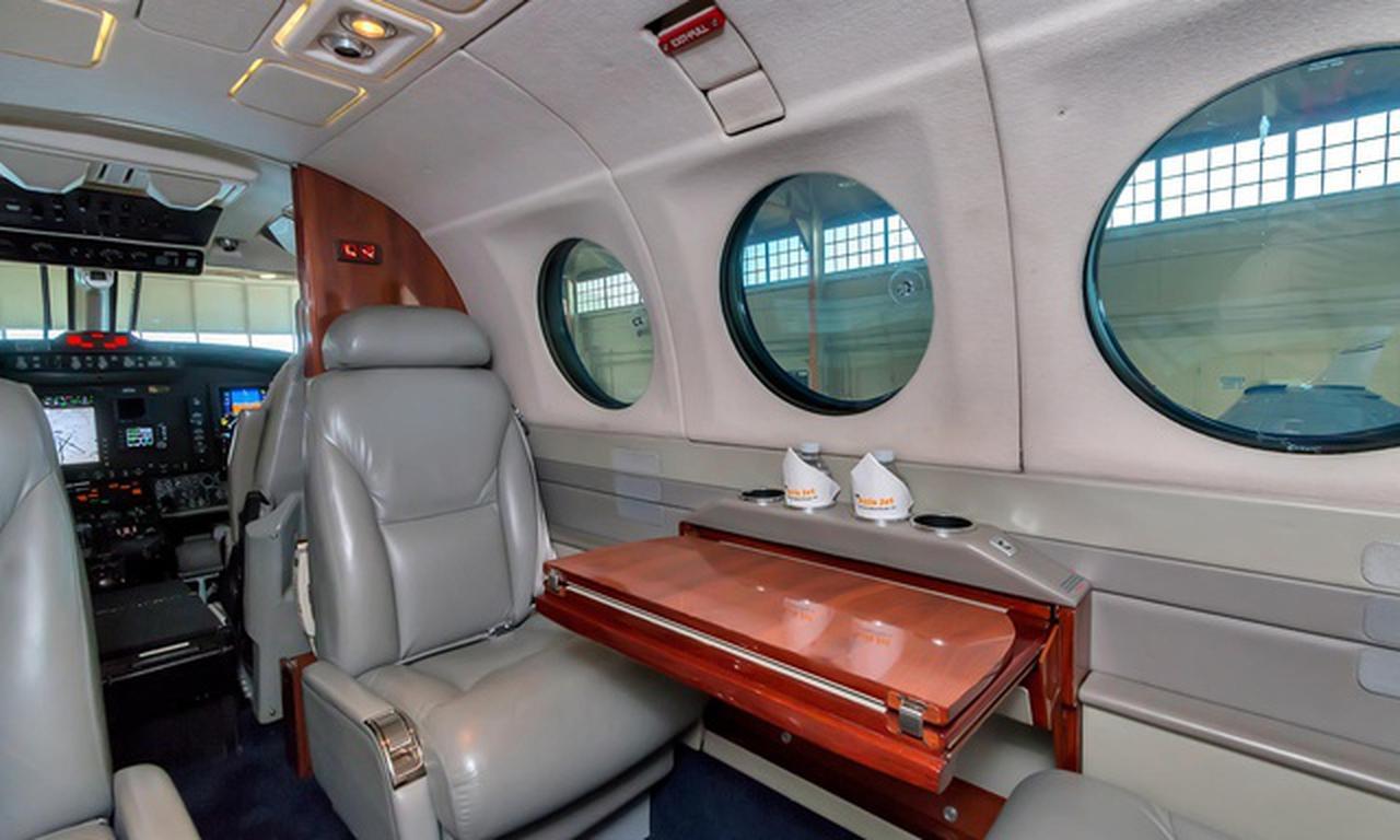 King Air 350 N400AY рассчитан на 9 пассажиров. Багажное отделение объёмом 2.2 м³ . Максимальная дальность полёта — 2850 км.