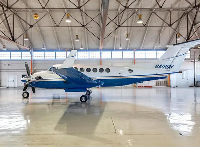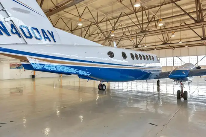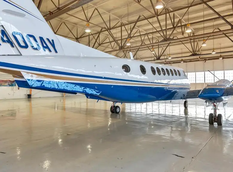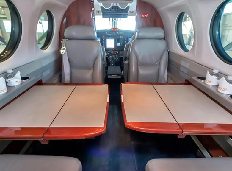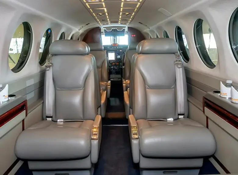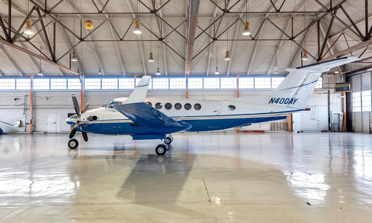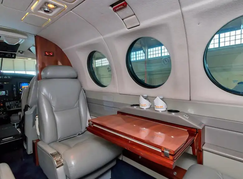 King Air 350 N400AY рассчитан на 9 пассажиров. Багажное отделение объёмом 2.2 м³ . Максимальная дальность полёта — 2850 км.