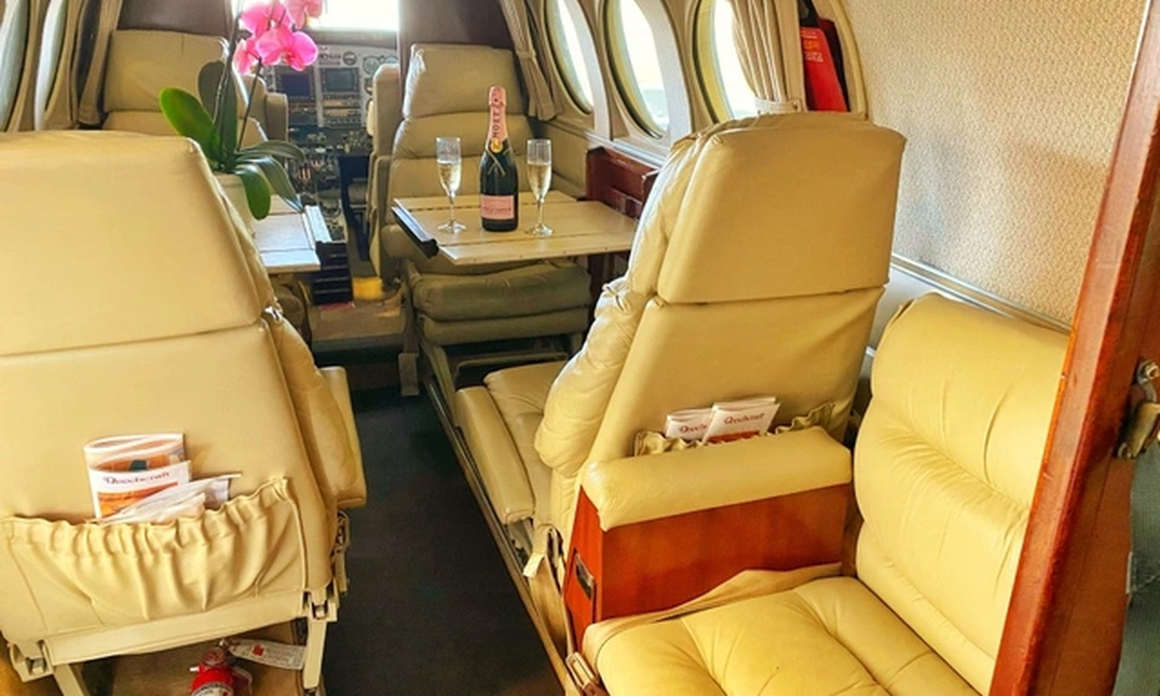 King Air C90A N711BN рассчитан на 6 пассажиров. Багажное отделение объёмом 1.37 м³ позволяет разместить до 4 чемоданов L-размера . Максимальная дальность полёта — 2446 км.