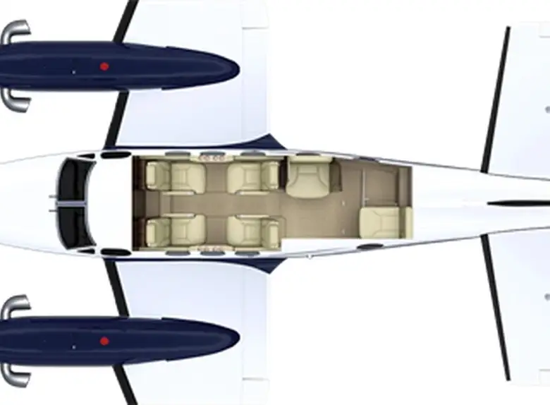King Air C90A OK-PRG рассчитан на 6 пассажиров. Багажное отделение объёмом 1.37 м³ позволяет разместить до 4 чемоданов L-размера . Максимальная дальность полёта — 2446 км.