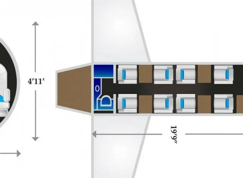 Интерьер выполнен в конфигурации "двойной клуб", включает откидные столики, розетки, освещение и отдельный туалет. Отличный баланс между деловой и личной атмосферой в воздухе.