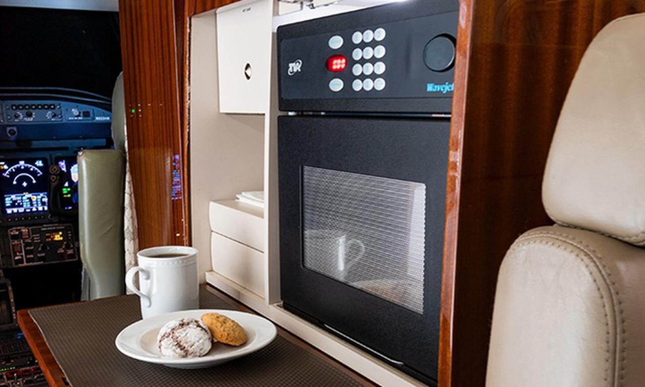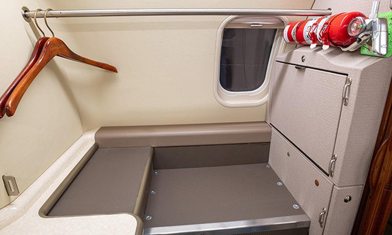 Learjet 45XR N823HM рассчитан на 8 пассажиров. Багажное отделение объёмом 1.84 м³ позволяет разместить до 5 чемоданов L-размера . Максимальная дальность полёта — 3865 км.