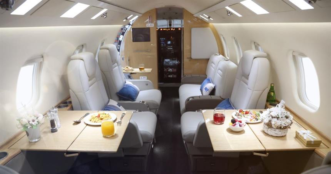 Learjet 60XR A6-GOA рассчитан на 7 пассажиров. Багажное отделение объёмом 1.36 м³ позволяет разместить до 4 чемоданов L-размера . Максимальная дальность полёта — 4539 км.