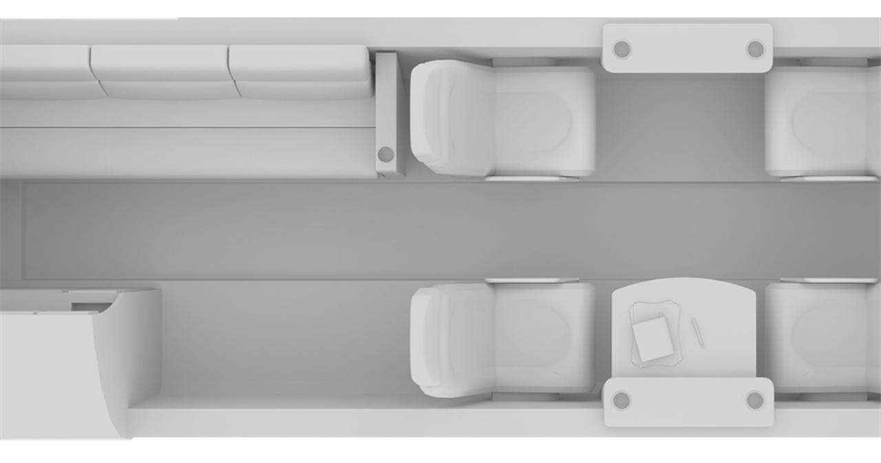 На борту доступны следующие удобства: Кофейник , Полноценный туалет , Бортпроводник , Контейнер для льда , Частичная кухня , Разрешены домашние животные , Курение разрешено , Вакуумный туалет .
