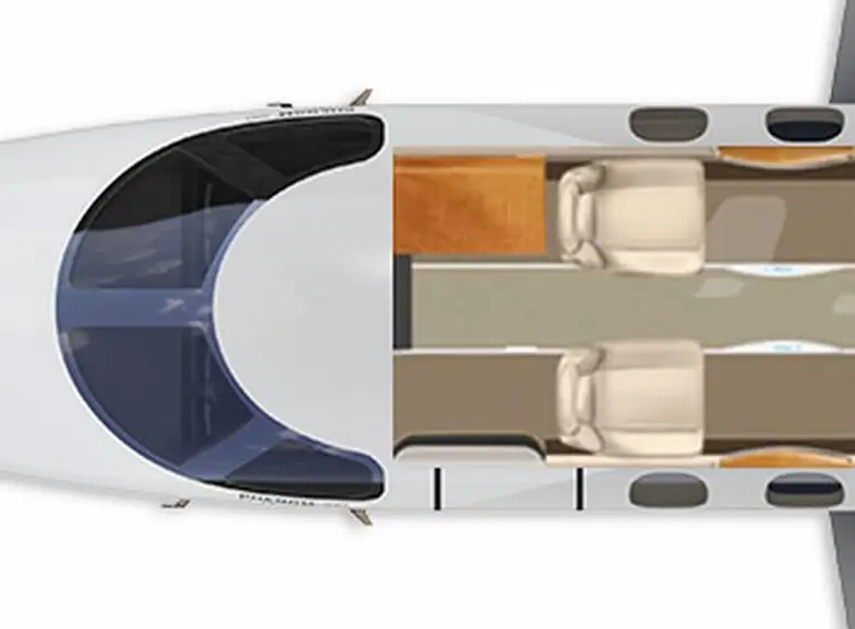 Phenom 100E C-GSAM рассчитан на 4 пассажиров. Багажное отделение объёмом 1.75 м³ позволяет разместить до 5 чемоданов L-размера . Максимальная дальность полёта — 2148 км.