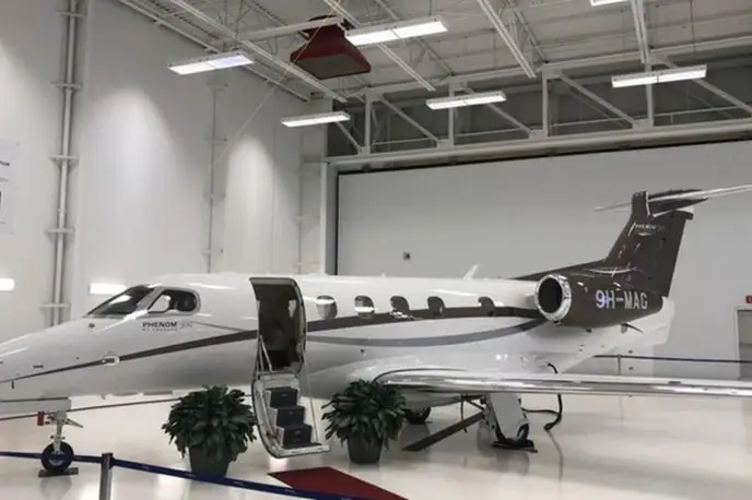 Phenom 300 с регистрационным номером 9H-MAG (серийный номер 50500446) относится к классу Super light jet и эксплуатируется авиакомпанией Luxwing Ltd. Самолёт базируется в Bari, Italy (BRI) и доступен для коммерческих чартеров. q