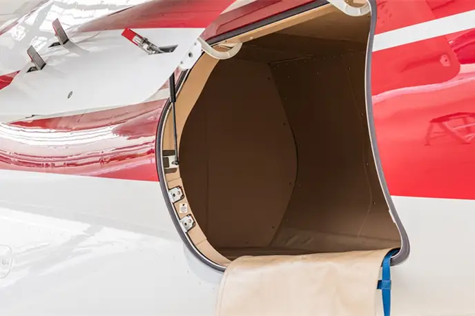 Phenom 300 F-HEGA рассчитан на 9 пассажиров. Багажное отделение объёмом 2.15 м³ позволяет разместить до 6 чемоданов L-размера . Максимальная дальность полёта — 3334 км.
