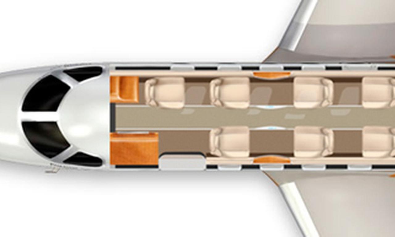 Phenom 300 N14AQ рассчитан на 7 пассажиров. Багажное отделение объёмом 2.15 м³ позволяет разместить до 6 чемоданов L-размера . Максимальная дальность полёта — 3334 км.
