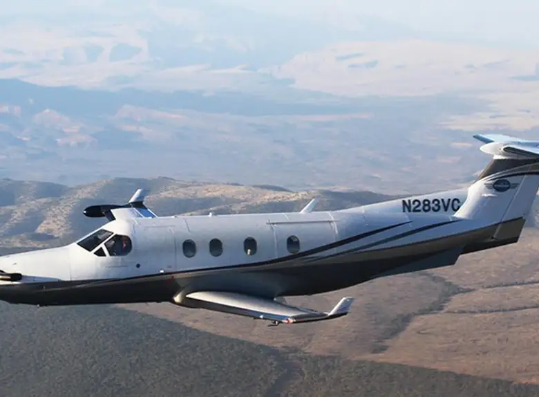 Pilatus PC-12/47 N283VC . Багажное отделение объёмом 1.13 м³ позволяет разместить до 3 чемоданов L-размера . Максимальная дальность полёта — 2976 км.