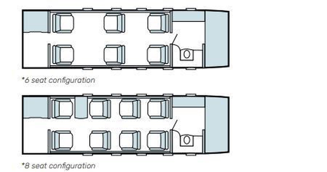 Pilatus PC-24 HB-VVU рассчитан на 8 пассажиров. Багажное отделение объёмом 2.5 м³ позволяет разместить до 7 чемоданов L-размера . Максимальная дальность полёта — 3303 км.